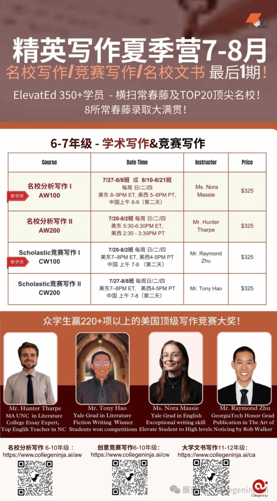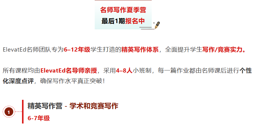 1. 名校分析写作 I (AW100 6-7年级)  新学员先修