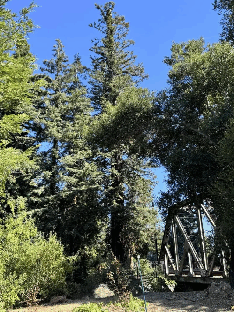 据巴洛阿图历史」记载,随着19世纪中期旧金山至圣荷西的马路与铁路建设开通,El Palo Alto 作为沿途醒目的地标被广为记录。1863年铁路开通,火车每日多达70班通过,煤烟与震动导致树冠枯萎,水源下降、河岸侵蚀,也使这棵红木摇摇欲坠。