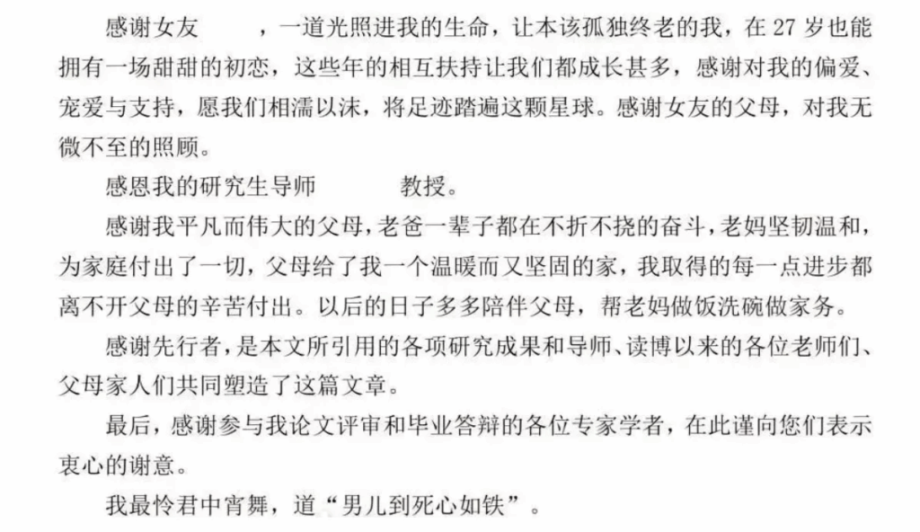 近日,一篇博士论文的致谢词,感动了无数网友。