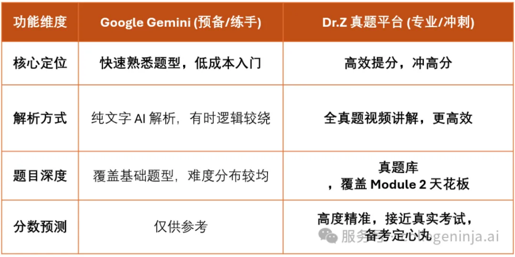 • 备考早期: 用 Google Gemini 找感觉,白嫖资源,建立基础。