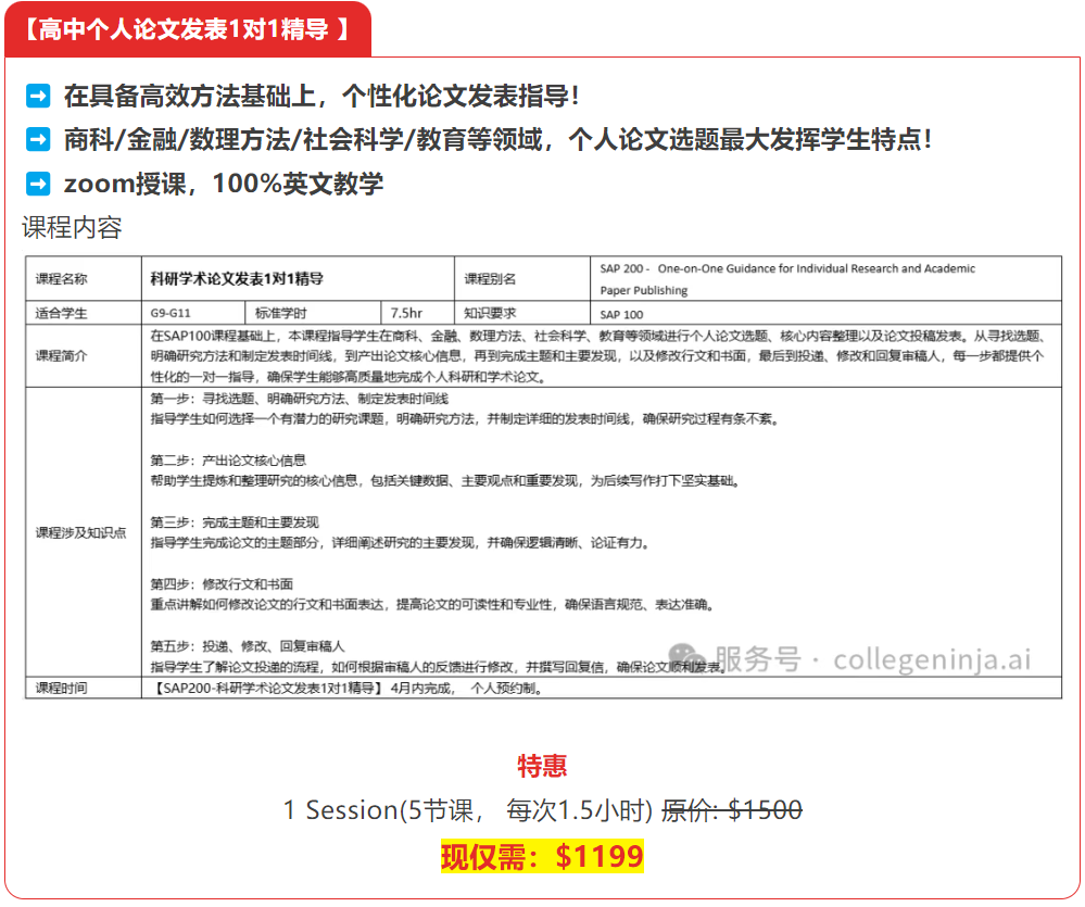 高中生的论文发表目标为美国主流高中生和学术期刊: 《Journal of Emerging Investigators》、《National High School Journal of Science》、《Journal of Student Research》等,名校专业认可的研究期刊。这类期刊的论文接受率低于20%,董老师指导的学生论文接受率为100%。