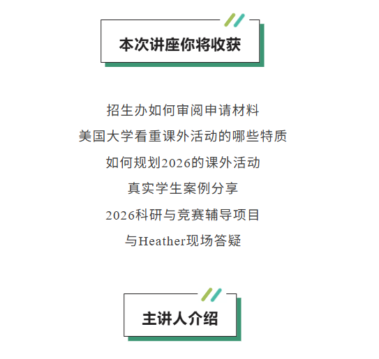 为了帮大家理清课外活动的思绪,让每个孩子都找到适合自己的活动路线,我们特邀达特茅斯前招生官,同时也是三位藤校生的母亲Heather老师,来讲讲2026课外活动规划的秘籍。