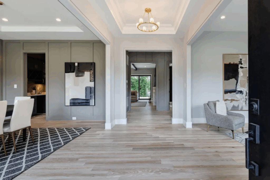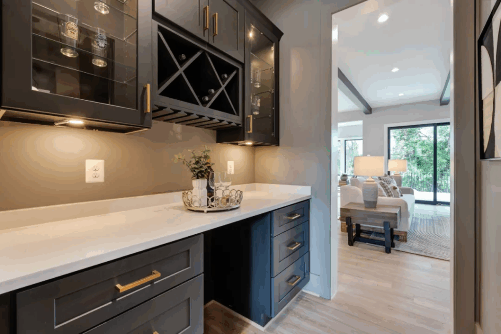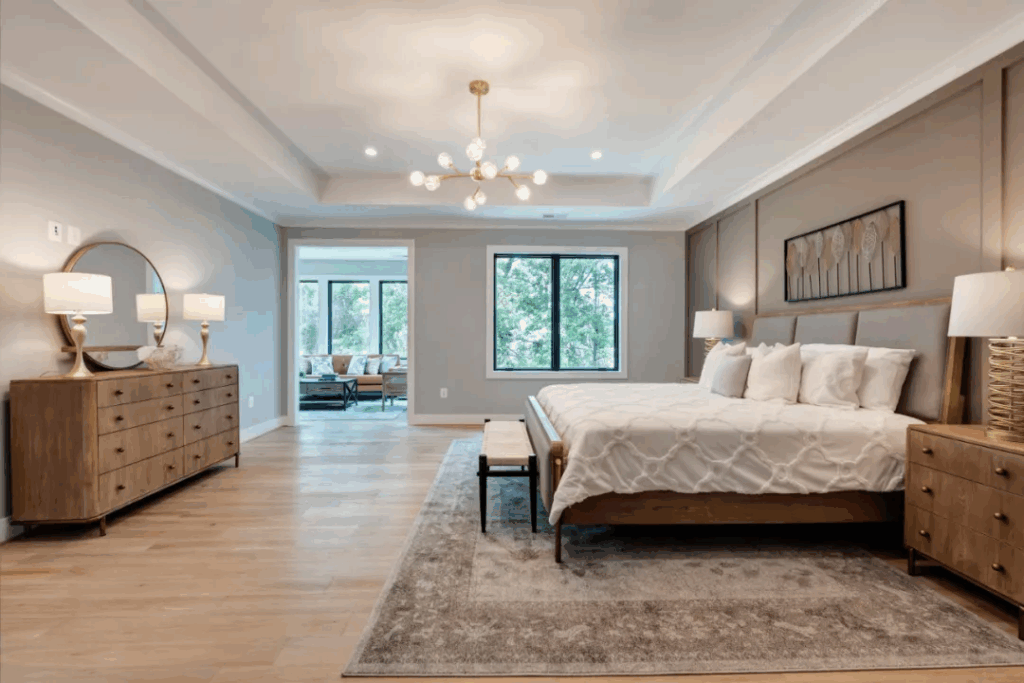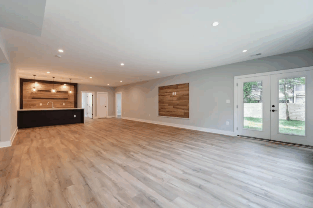下层拥有超2,000平方英尺的豪华生活空间,体验与主楼层相同的生活质量,可徒步至后院,并拥有充足的照明设备。