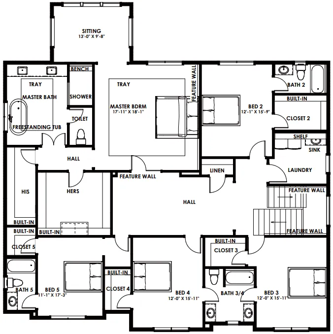 经过精心设计的二楼布局,设有主卧套房,带有宽敞的步入式衣帽间、独立卫浴间,以及4间带浴缸和步入式衣帽间的次卧。所有房间面积宽敞,自然光线充足!