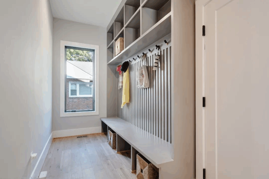 车库入户一侧设计有通顶的储物柜,将实用与美感合二为一。