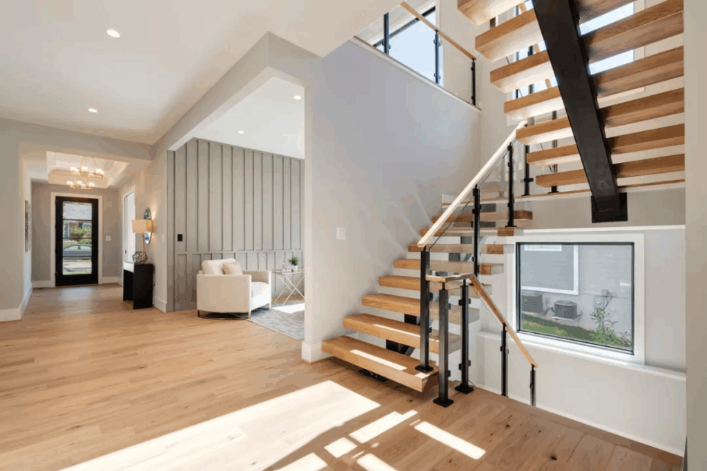 下层拥有超2,000平方英尺的豪华生活空间,体验与主楼层相同的生活质量,可徒步至后院,并拥有充足的照明设备。