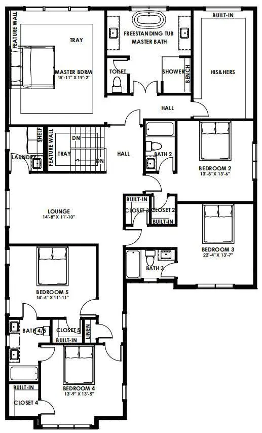 经过精心设计的二楼布局,设有主卧套房,带有宽敞的步入式衣帽间、独立卫浴间,以及4间带浴缸和步入式衣帽间的次卧。所有房间面积宽敞,自然光线充足!