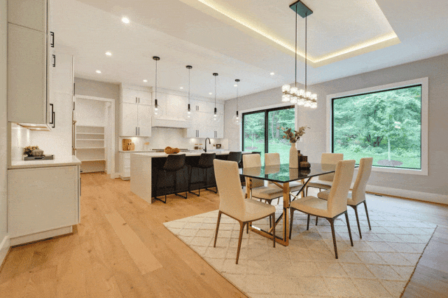 商用级顶级电器,配以堆叠式橱柜,橱柜内/橱柜下皆设置充足的照明,厨房正中安置宽敞的瀑布吧台和酒吧座位,可在开放式厨房中实现每个厨师的梦想。除开常规的厨房设置,厨房一侧还设有一个舒适的阳光早餐区,使得整个空间更加温馨。