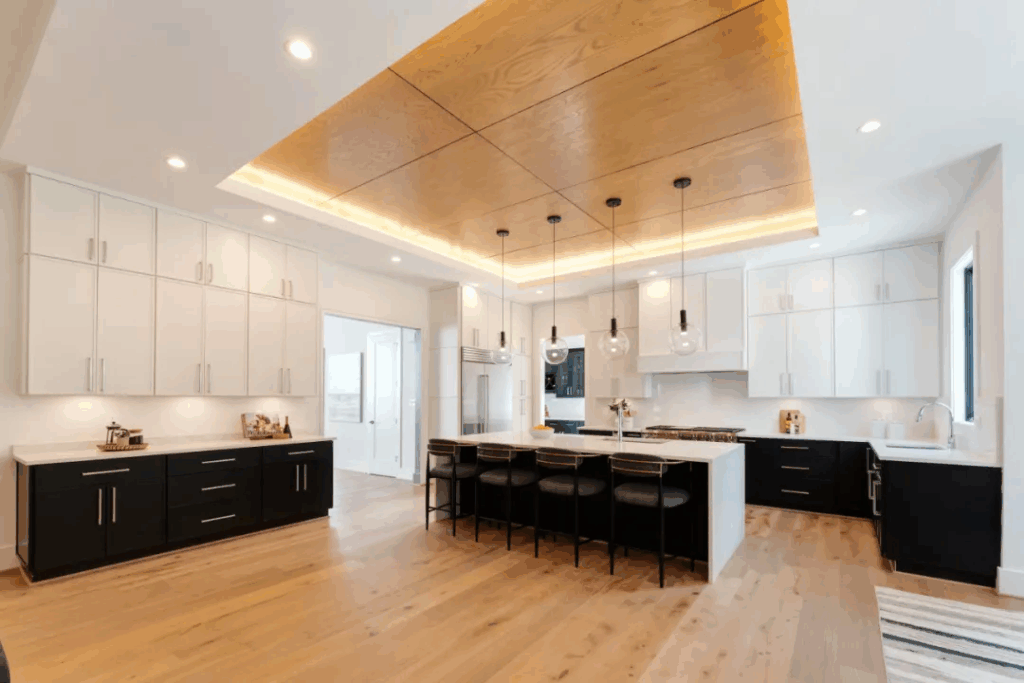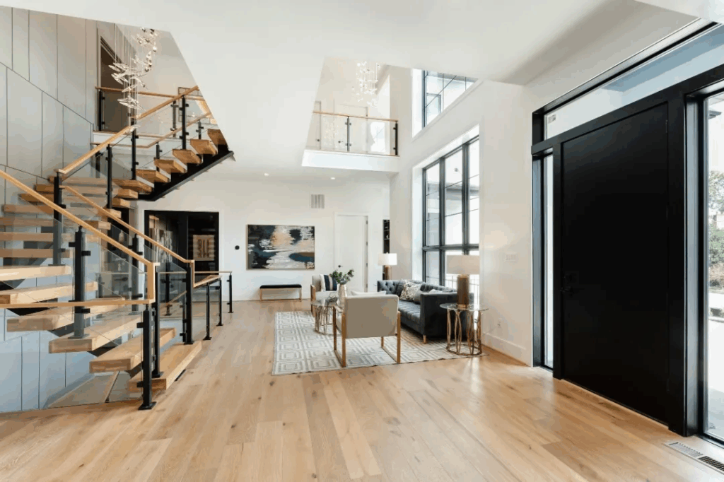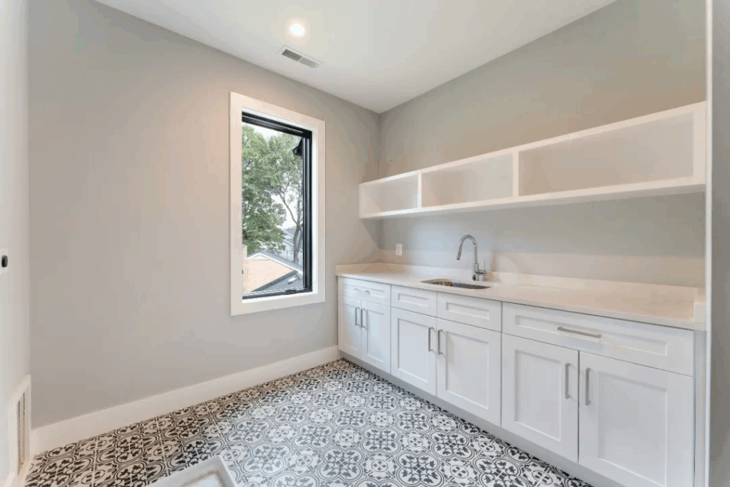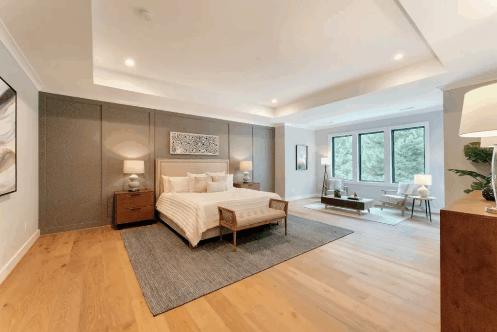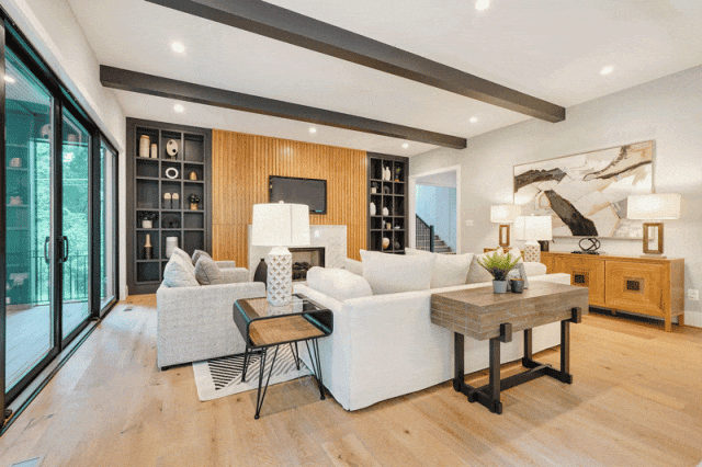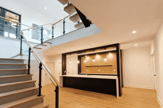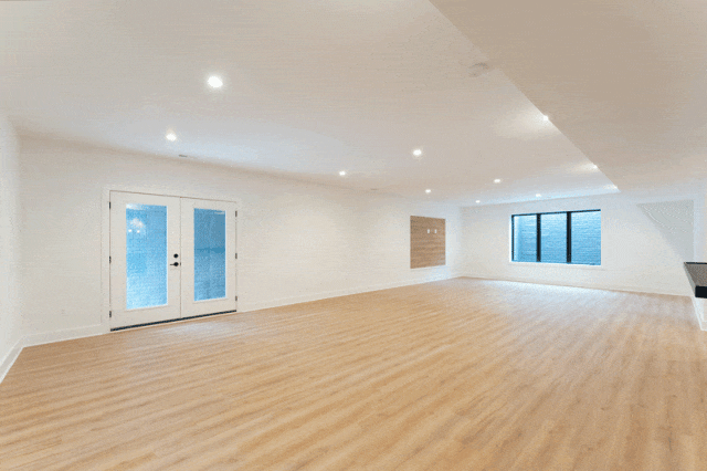下层拥有超2,000平方英尺的豪华生活空间,体验与主楼层相同的生活质量,可徒步至后院,并拥有充足的照明设备。