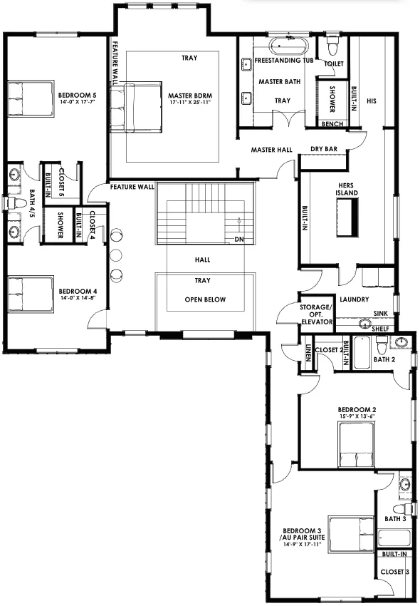 经过精心设计的二楼布局,设有主卧套房,带有宽敞的步入式衣帽间、独立卫浴间,以及4间带浴缸和步入式衣帽间的次卧。所有房间面积宽敞,自然光线充足!