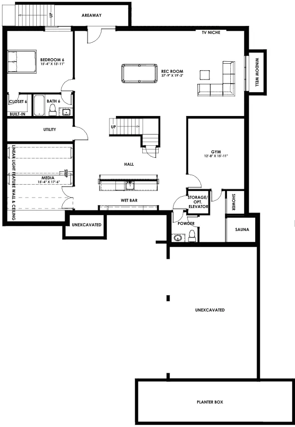 开放式地下室,带有宽敞的娱乐室,名家设计的湿吧,健身房/游戏厅,专业设计的家庭影院将为家庭带来许多优质的夜晚。